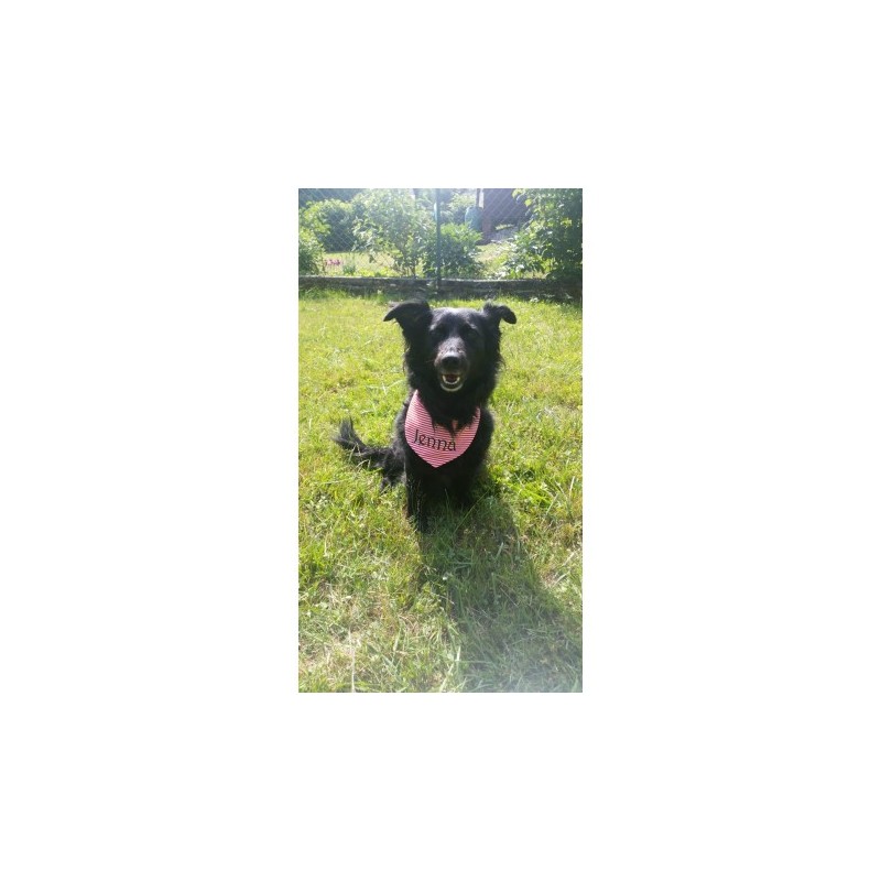 Beim Ausmessen des Halsumfanges Eures Lieblings bitte nicht ganz genau eng herum messen, sondern leicht schräg nach hinten. Da nach meiner Erfahrung das Tuch nicht so eng wie ein Halsband am Hals sitzt, sondern leicht schräg.
