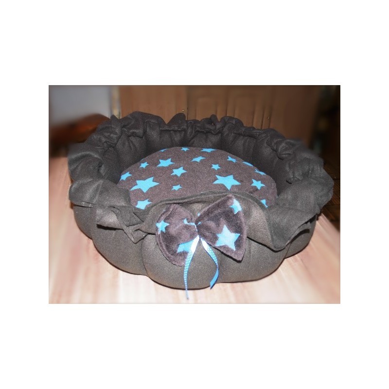 Kissen: Grundfarbe dunkelbraun mit hellblauen Sternchen
